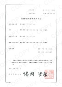 令和7年7月1日付にて労働者派遣業許可を取得いたしました。